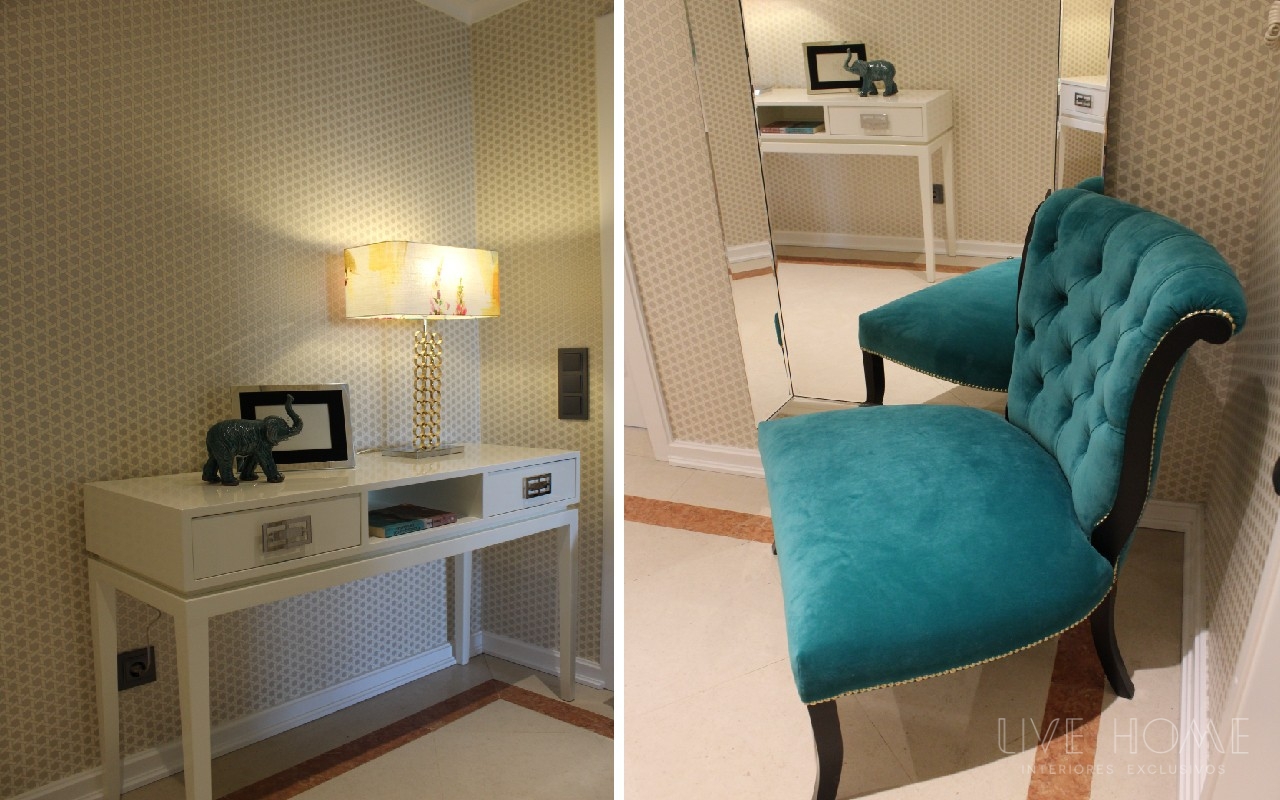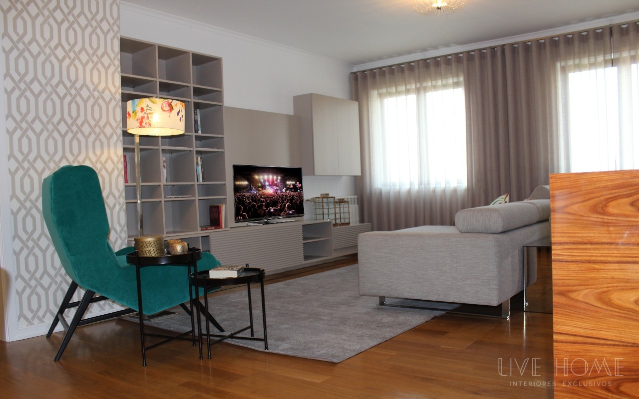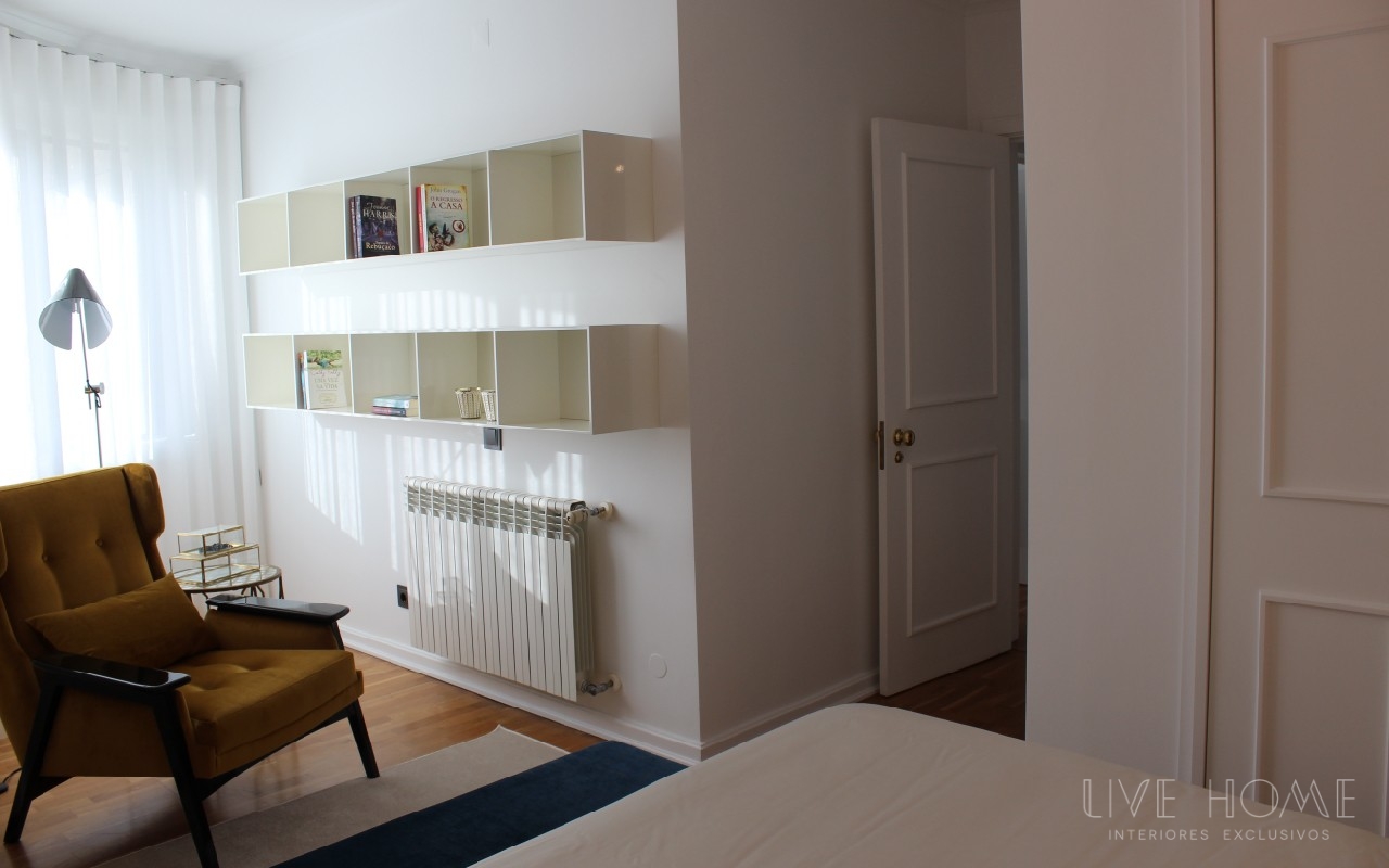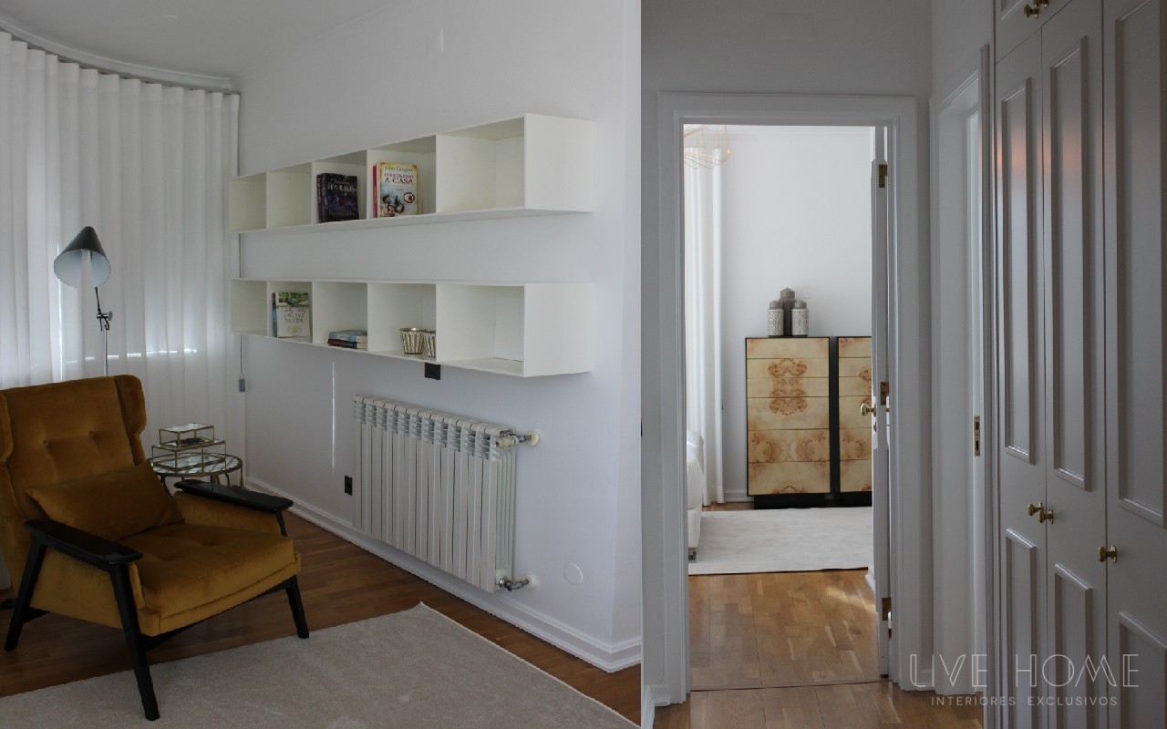 Decoração integral de apartamento na Lapa, em Lisboa. Serviço de acompanhamento e seleção de materiais; decoração, Design e montagem de mobiliário, sofás, cadeirões, iluminação, tapetes, cortinados, papéis de parede, tecidos, peças de decoração e complementos.